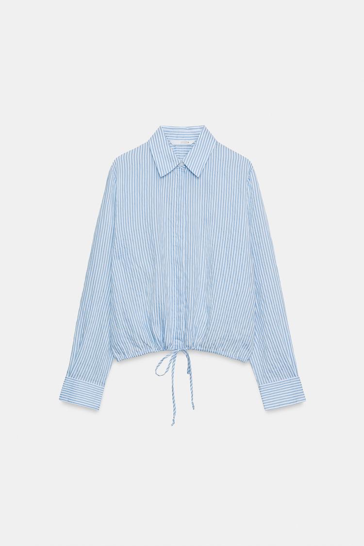 ZARA РУБАШКА В ПОЛОСКУ С ЗАВЯЗКАМИ — ZW COLLECTION, СИНИЙ/БЕЛЫЙ