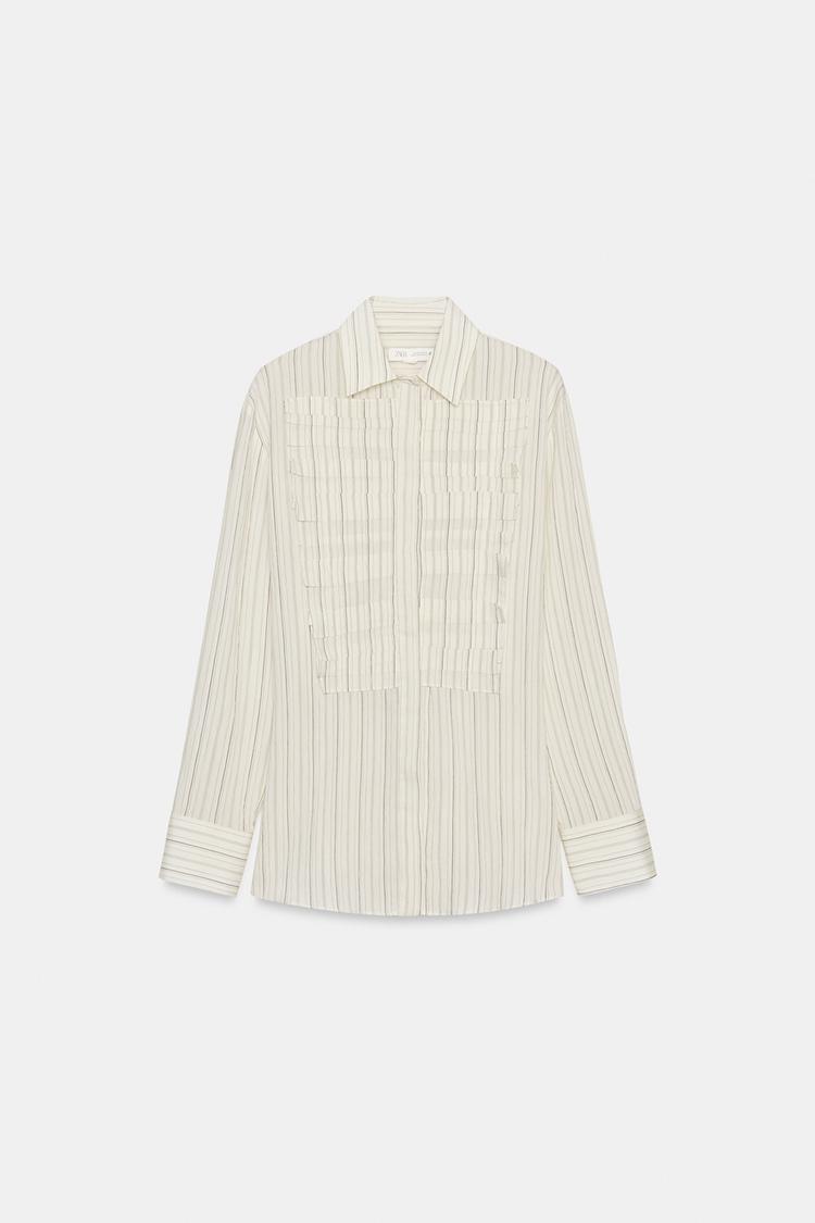 ZARA РУБАШКА В ПОЛОСКУ СО СКЛАДКАМИ — ZW COLLECTION LIMITED EDITION, ЭКРЮ/ЧЕРНЫЙ