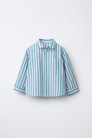 ZARA РУБАШКА В ПОЛОСКУ, ЗЕЛЕНОВАТО-СИНИЙ