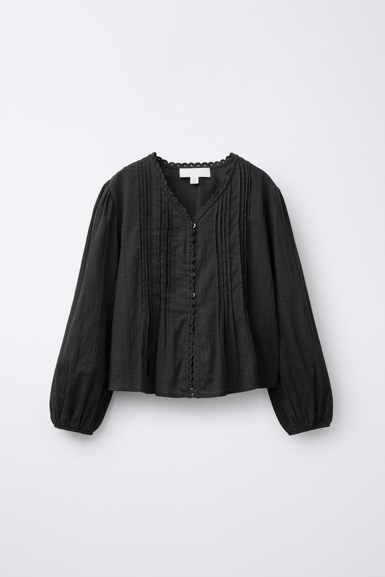 ZARA РУБАШКА В РОМАНТИЧЕСКОМ СТИЛЕ ИЗ РЕЛЬЕФНОЙ ТКАНИ, ЧЕРНЫЙ
