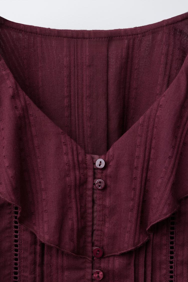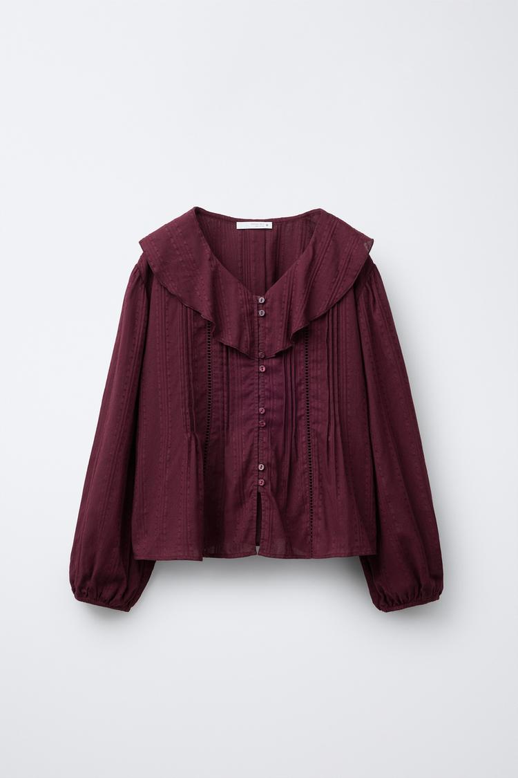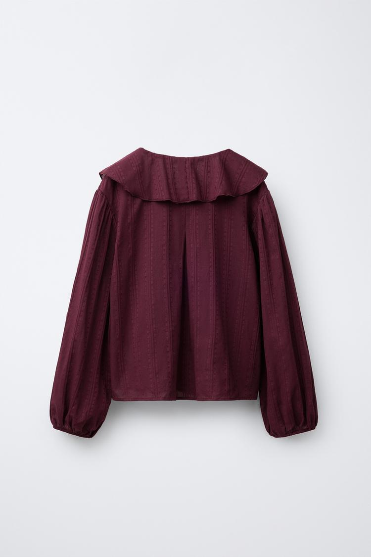 ZARA РУБАШКА В РОМАНТИЧЕСКОМ СТИЛЕ С ВОЛАНОМ НА ВОРОТНИКЕ, ТЕМНО-БОРДОВЫЙ
