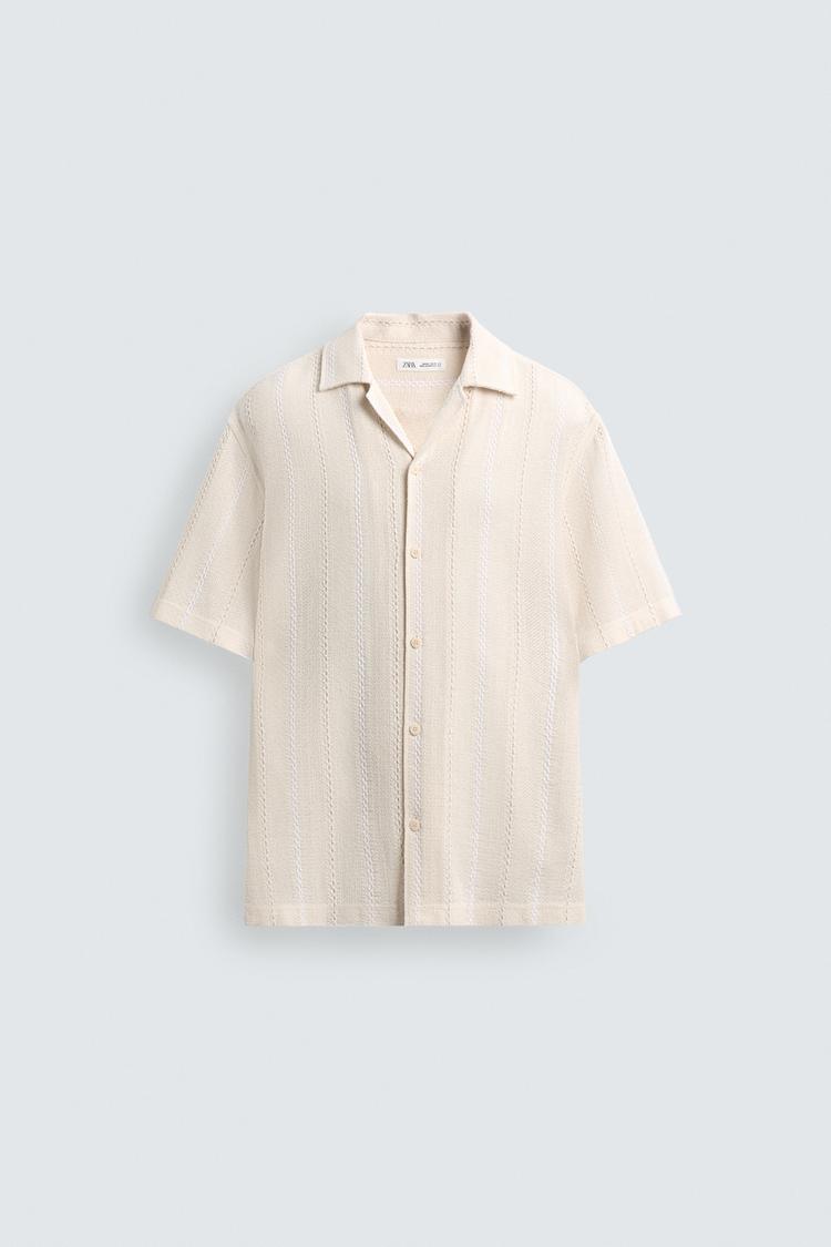 ZARA РУБАШКА ЖАККАРД С ГЕОМЕТРИЧЕСКИМ УЗОРОМ, ЭКРЮ
