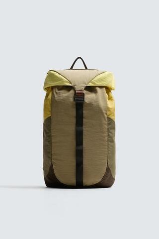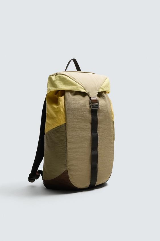 ZARA РЮКЗАК ИЗ ТЕХНИЧЕСКОЙ ТКАНИ С КОЖАНЫМИ ДЕТАЛЯМИ, РАЗНОЦВЕТНЫЙ