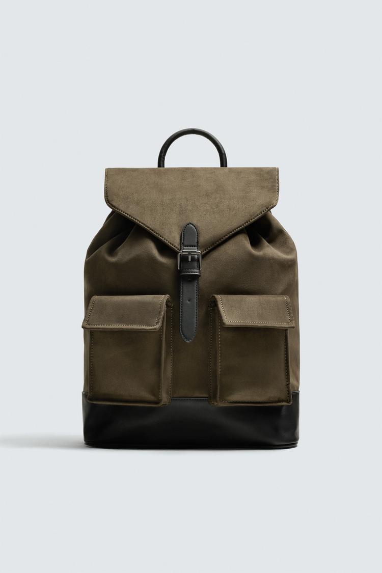 ZARA РЮКЗАК С МНОЖЕСТВОМ КАРМАНОВ, ЗЕЛЕНЫЙ ХАКИ