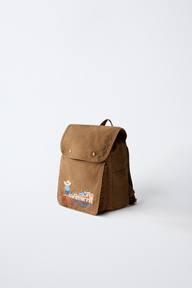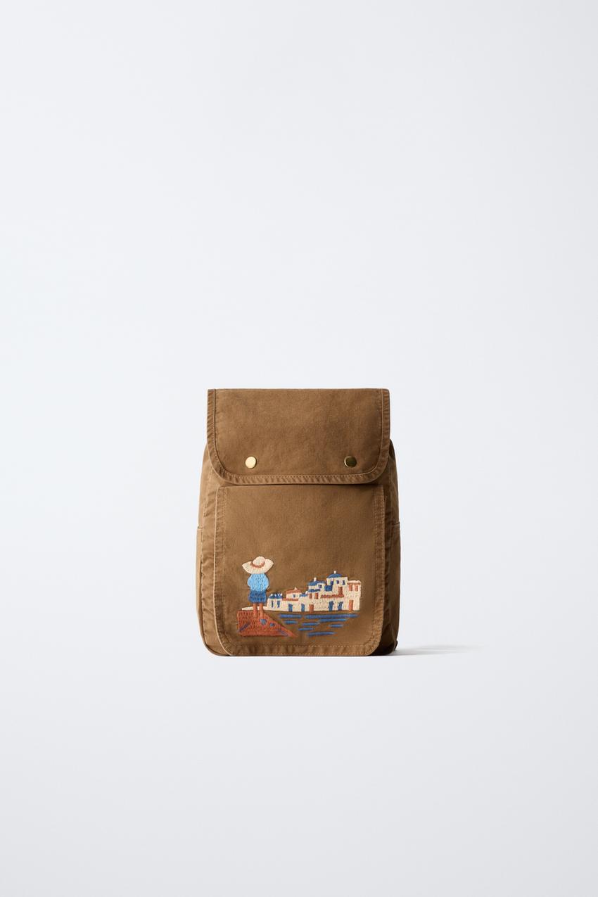 ZARA РЮКЗАК С ВЫШИВКОЙ, КОРИЧНЕВЫЙ
