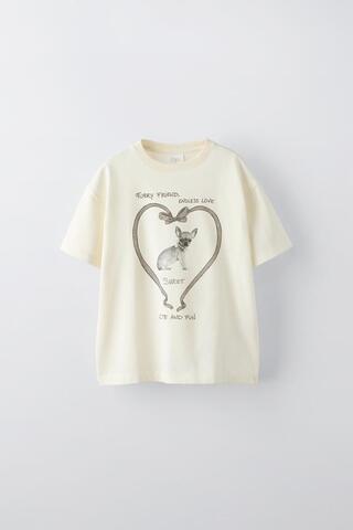 ZARA ФУТБОЛКА С ПРИНТОМ «СОБАКА», ЭКРЮ