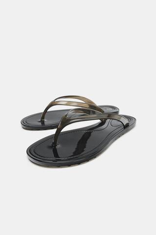 ZARA САНДАЛИИ С ПЕРЕМЫЧКОЙ МЕЖДУ ПАЛЬЦАМИ, ЧЕРНЫЙ