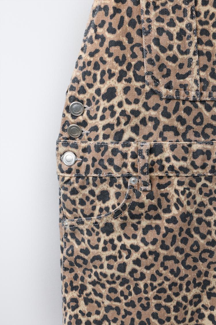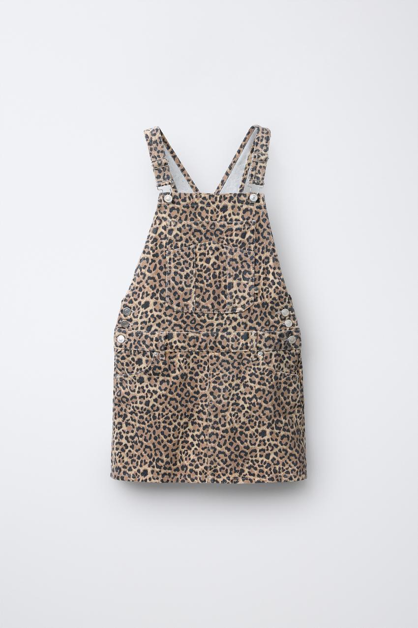 Сарафан с прямым вырезом и регулируемыми бретелями с застежками. Застежка на пуговицы по бокам. Передние и нагрудные накладные карманы. Анималистичный принт.