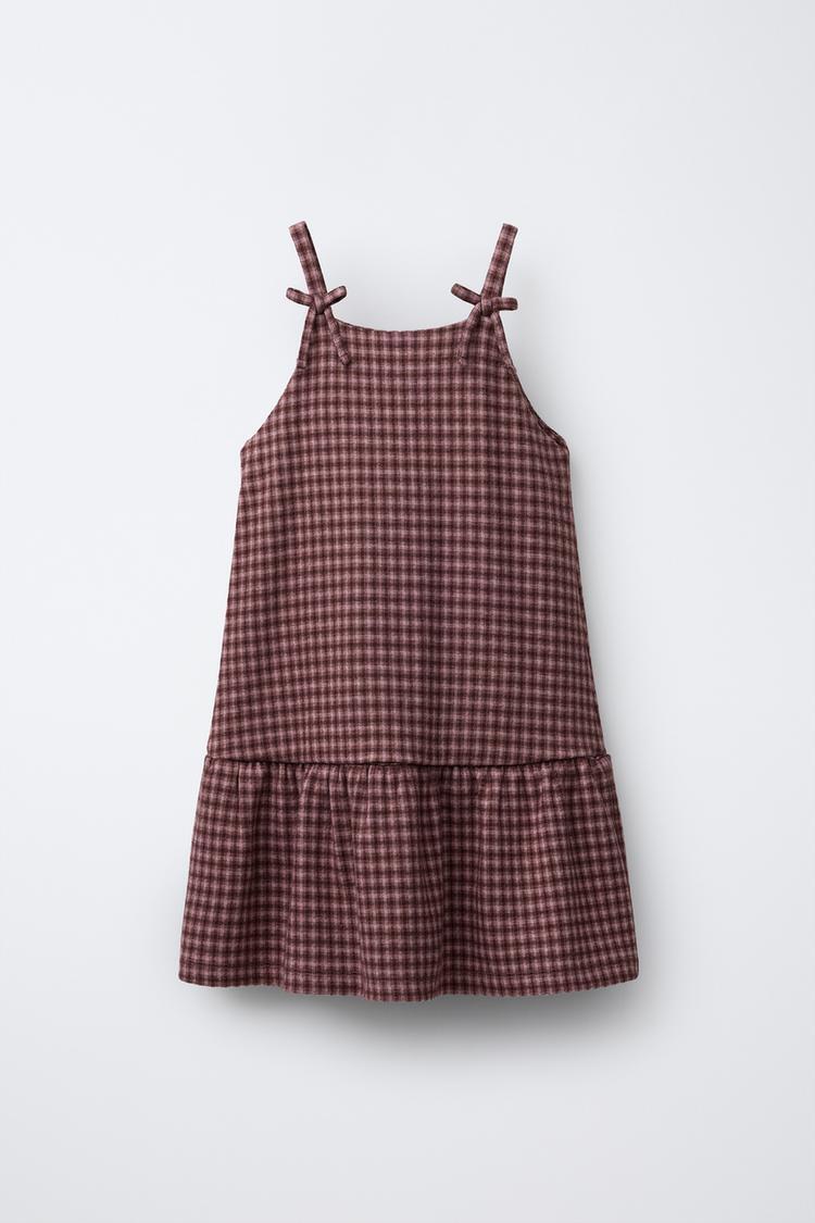 ZARA САРАФАН В КЛЕТКУ С БАНТАМИ, РОЗОВЫЙ