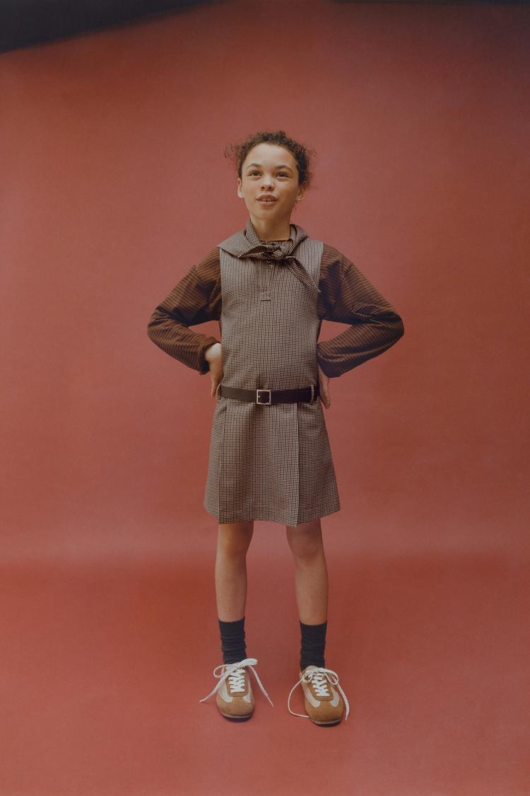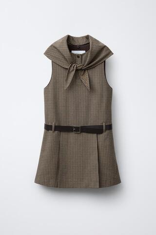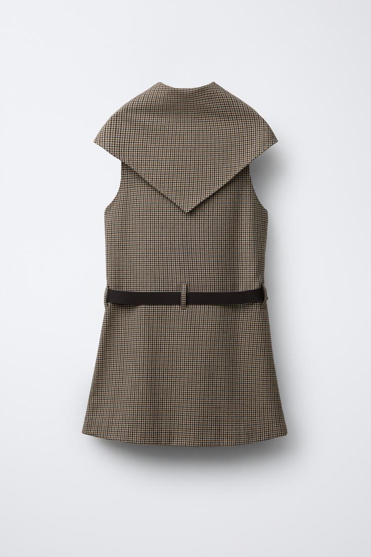 ZARA САРАФАН В КЛЕТКУ СО СЪЕМНЫМ ПЛАТКОМ, РЫЖЕВАТО-КОРИЧНЕВЫЙ
