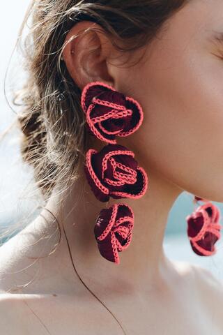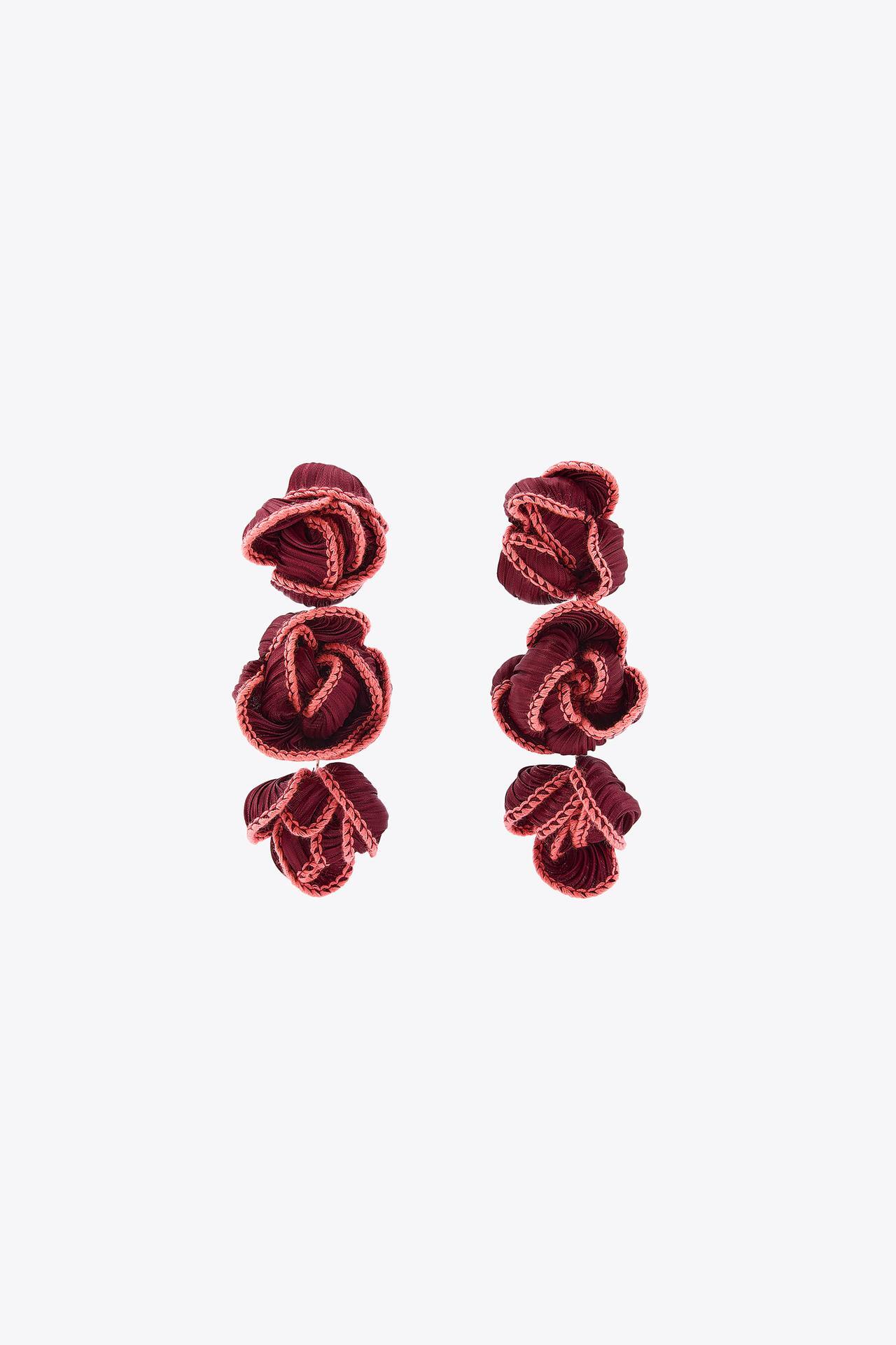 ZARA СЕРЬГИ ИЗ ТКАНИ С ЦВЕТАМИ И КОНТРАСТНОЙ ОТДЕЛКОЙ, ВИННЫЙ