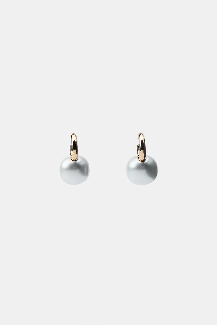 ZARA СЕРЬГИ-КОЛЬЦА С ИСКУССТВЕННЫМ ЖЕМЧУГОМ, РАЗНОЦВЕТНЫЙ