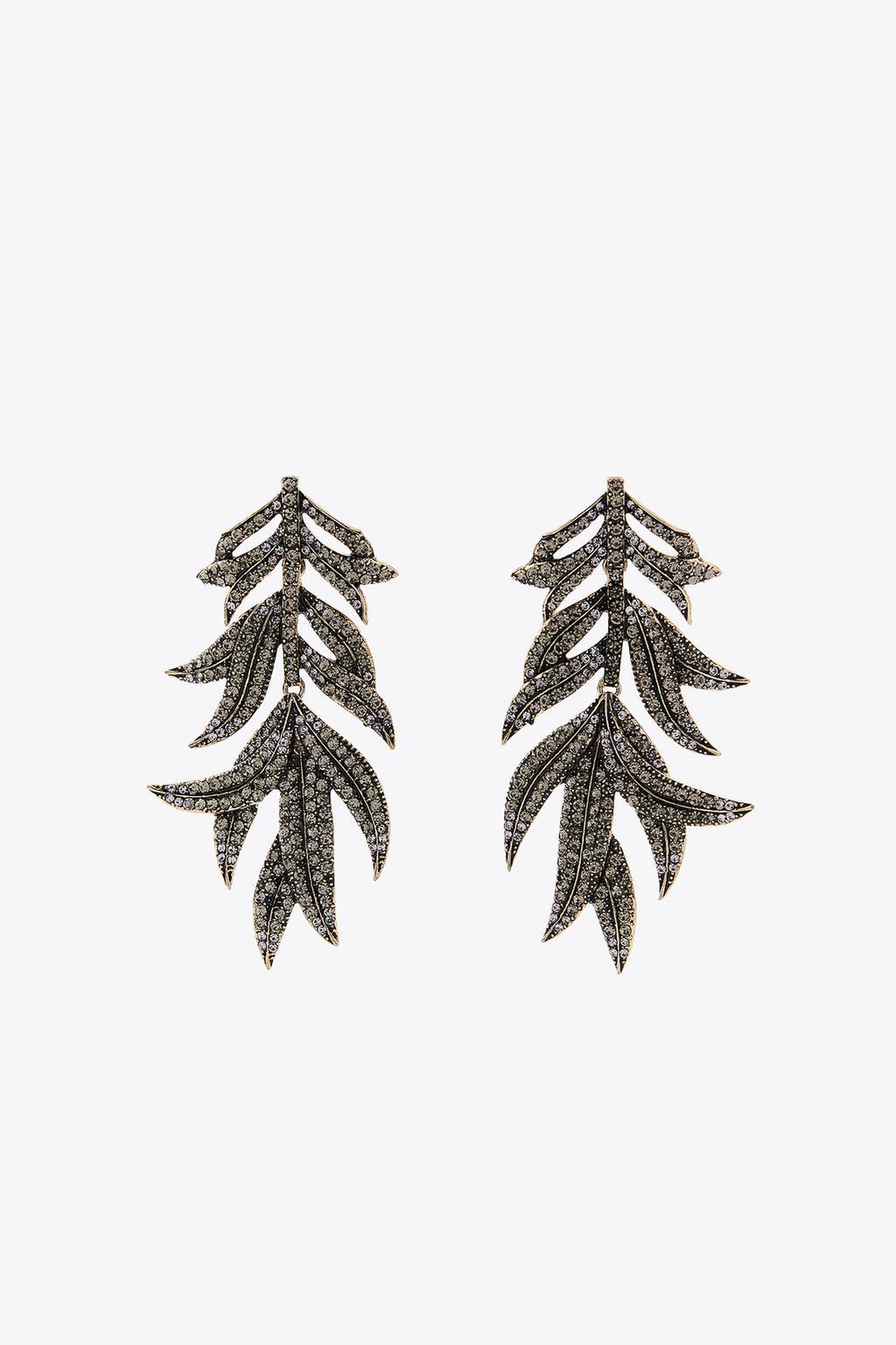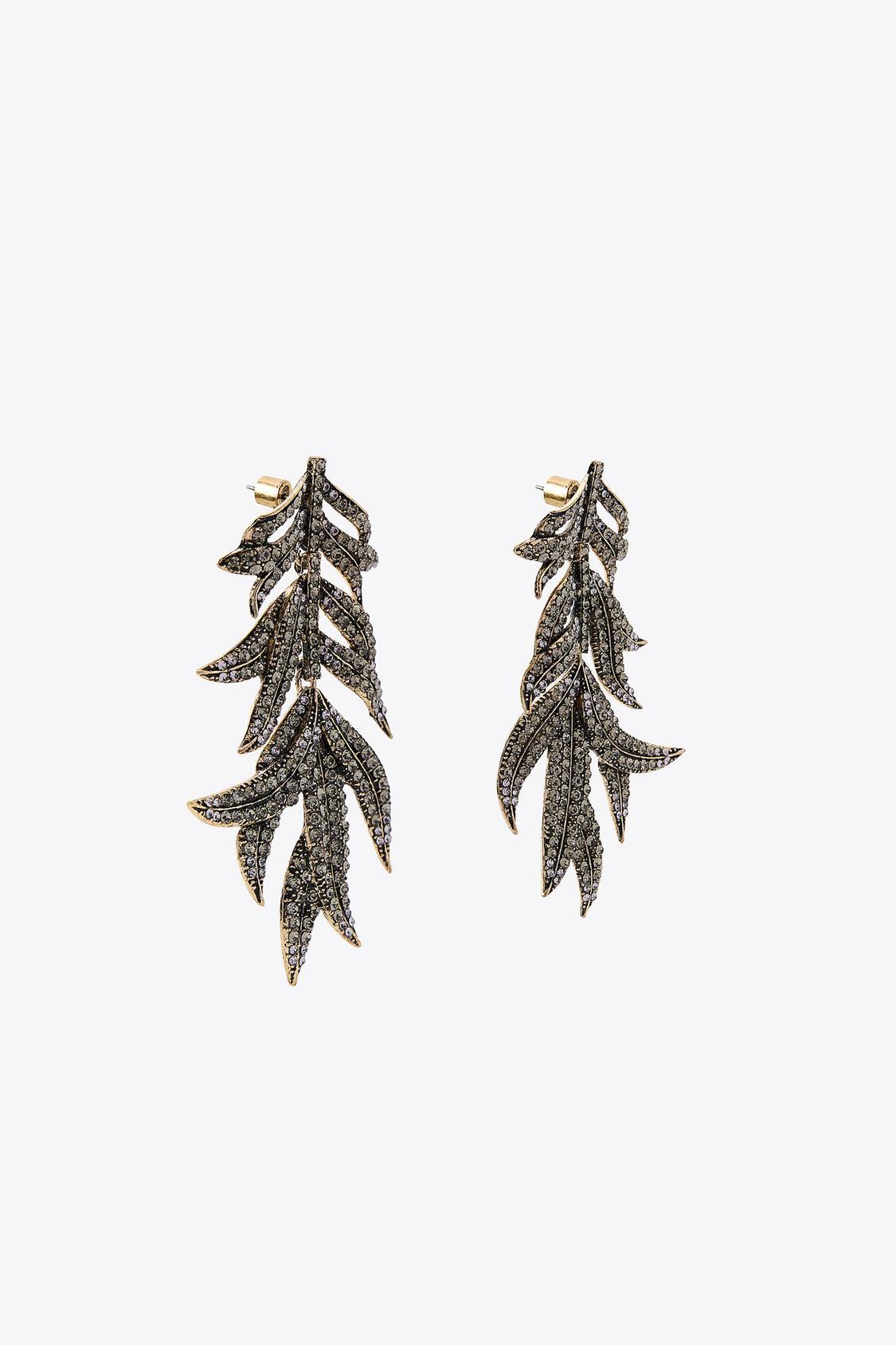 ZARA СЕРЬГИ «ЛИСТЬЯ» СО СТРАЗАМИ, ЦВЕТ СОСТАРЕННОГО ЗОЛОТА