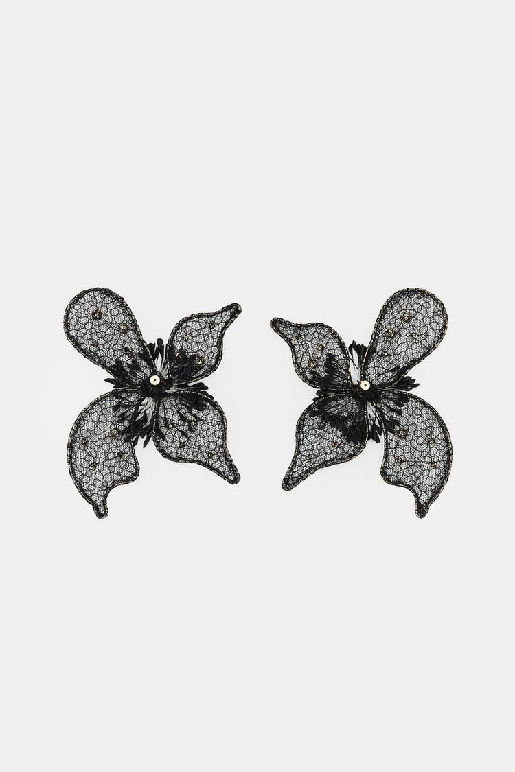 ZARA СЕРЬГИ МАКСИ-ЦВЕТОК, ЧЕРНЫЙ