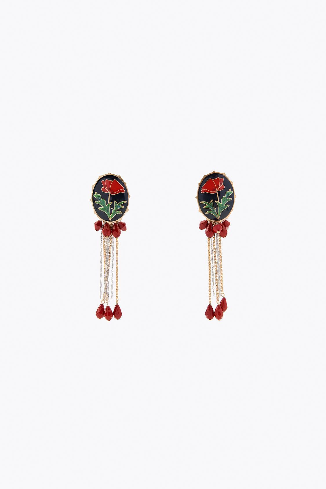 ZARA СЕРЬГИ-ПУСЕТЫ С ЦВЕТОЧНЫМ БИСЕРОМ, ЗОЛОТИСТЫЙ
