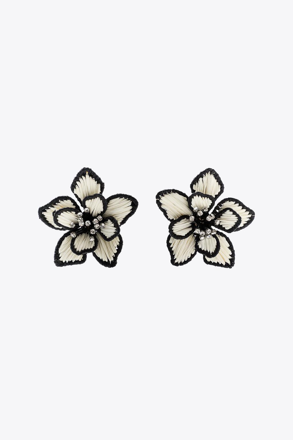 ZARA СЕРЬГИ-ЦВЕТЫ ИЗ РАФИИ С КОНТРАСТОМ, ЭКРЮ/ЧЕРНЫЙ