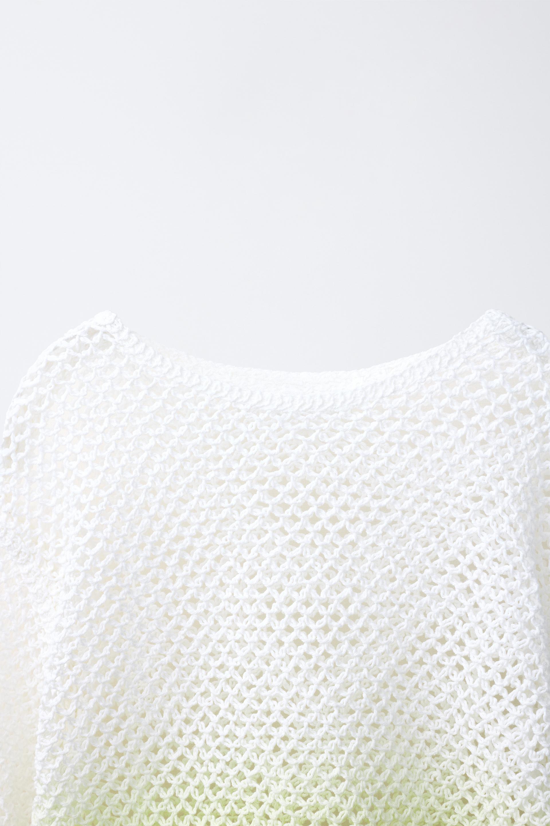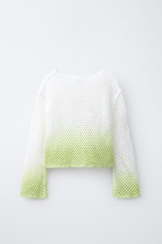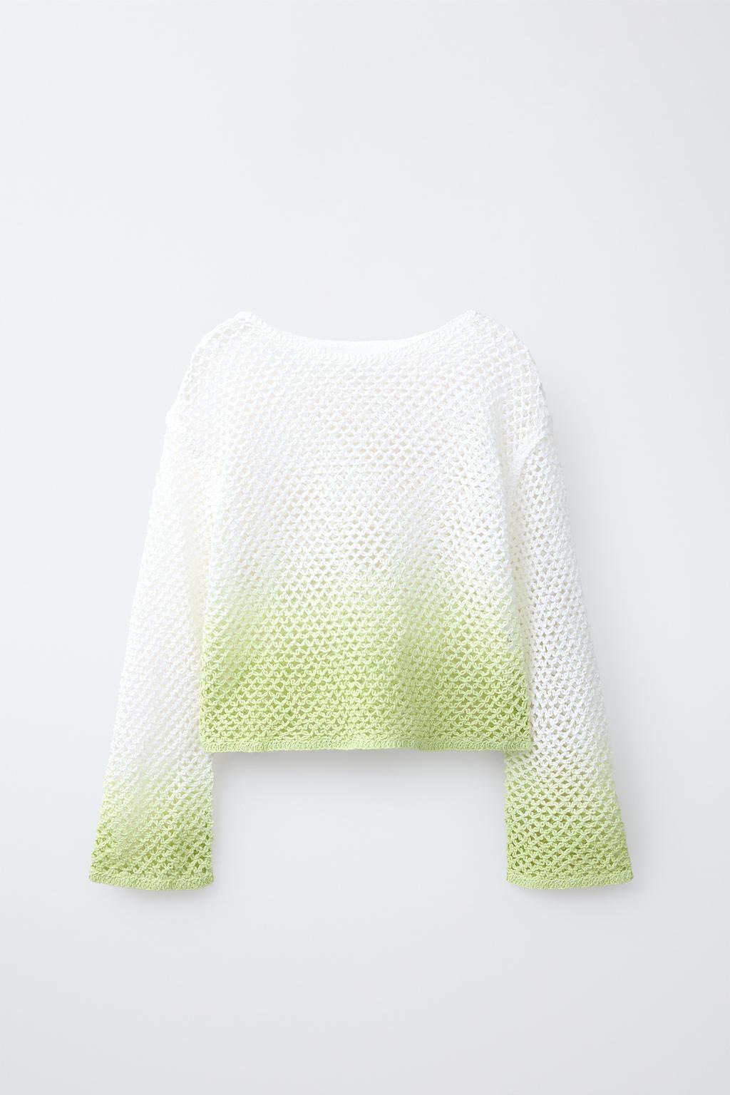 ZARA СЕТЧАТЫЙ СВИТЕР С ЭФФЕКТОМ ДЕГРАДЕ, ЭКРЮ/ЗЕЛЕНЫЙ