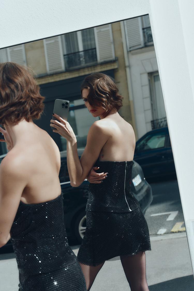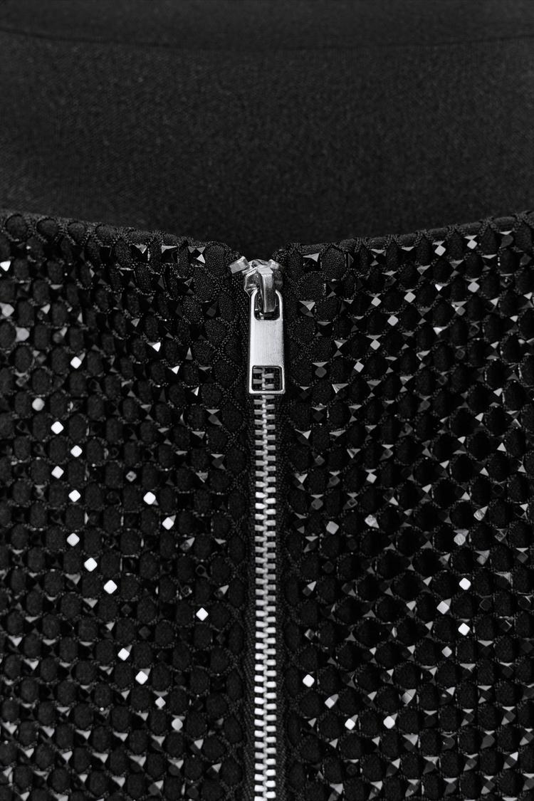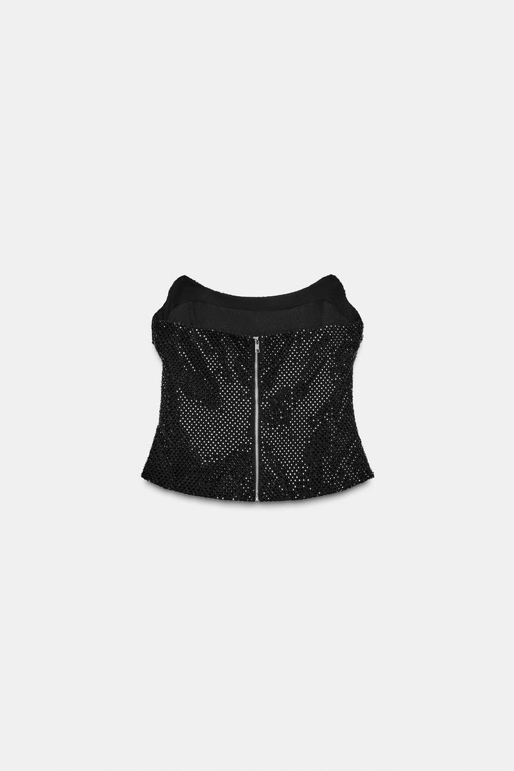 ZARA СЕТЧАТЫЙ ТОП С БУСИНАМИ, ЧЕРНЫЙ