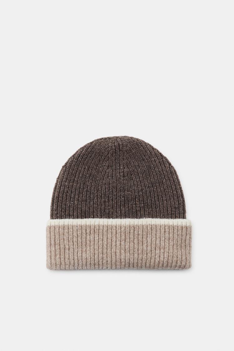 ZARA ШАПКА БИНИ ИЗ КОМБИНИРОВАННОГО ТРИКОТАЖА, РЫЖЕВАТО-КОРИЧНЕВЫЙ