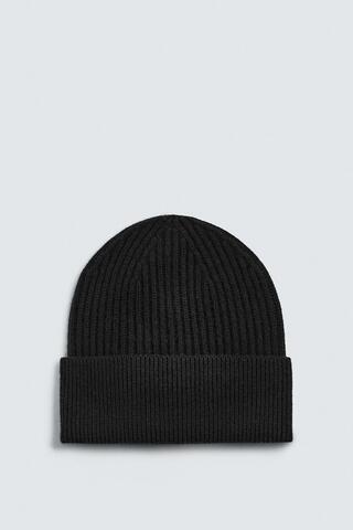 ZARA ШАПКА БИНИ ИЗ СМЕСОВОЙ ШЕРСТИ, ЧЕРНЫЙ