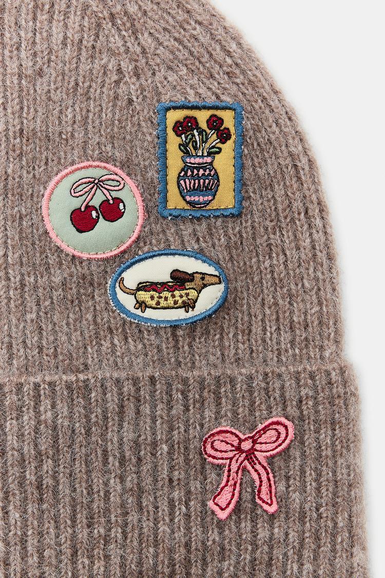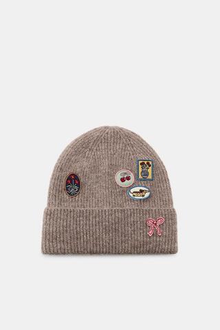 ZARA ШАПКА БИНИ С НАШИВКАМИ, ПЕСОЧНЫЙ