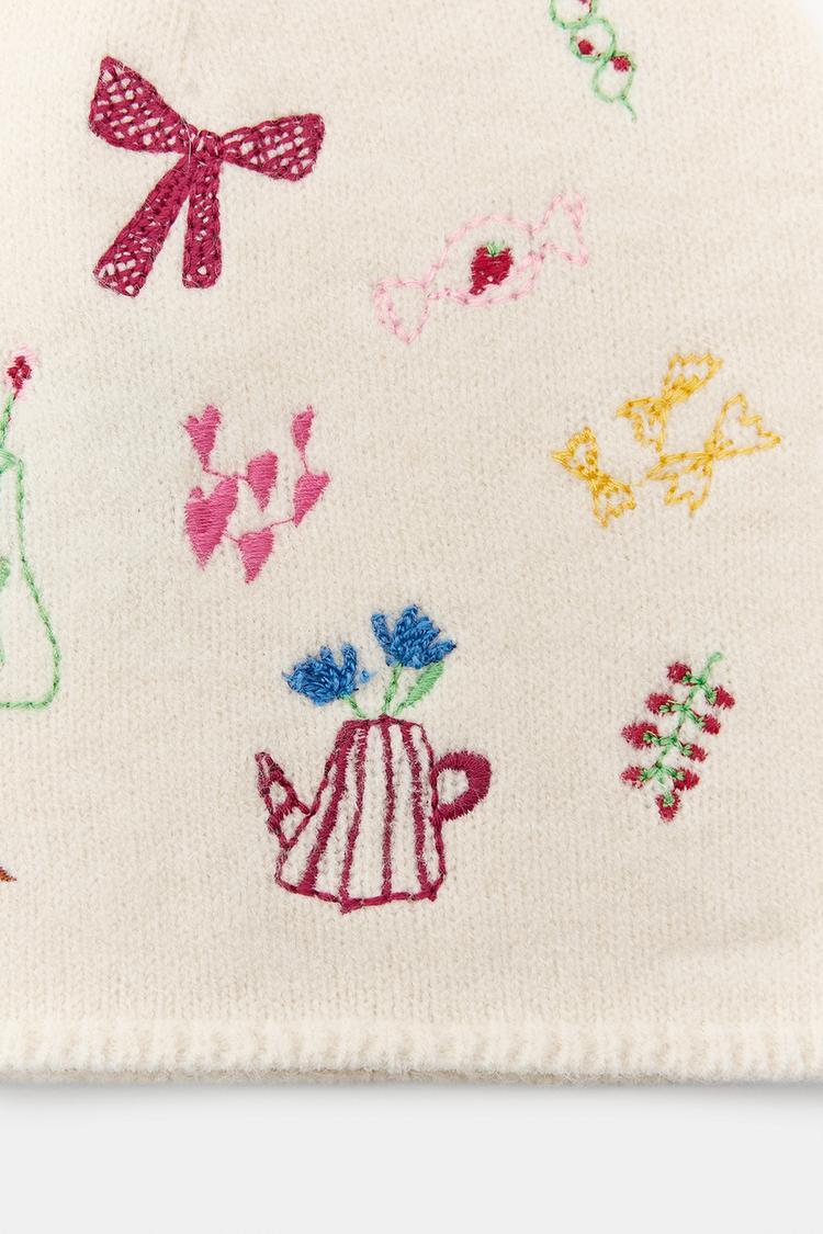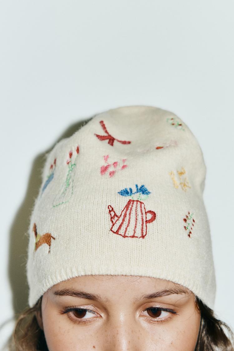 ZARA ШАПКА БИНИ С ВЫШИВКОЙ, ЭКРЮ