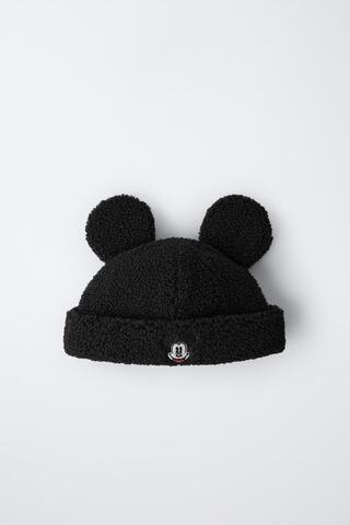 ZARA ШАПКА ИЗ ИСКУССТВЕННОЙ ОВЧИНЫ С ВЫШИВКОЙ MICKEY MOUSE © DISNEY, ЧЕРНЫЙ