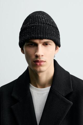 ZARA ШАПКА ИЗ РЕЛЬЕФНОЙ ПРЯЖИ, ЧЕРНЫЙ