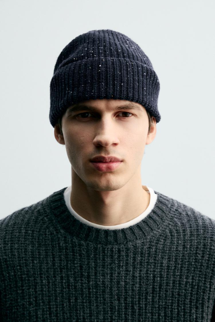 ZARA ШАПКА ИЗ РЕЛЬЕФНОЙ ПРЯЖИ, МОРСКОЙ СИНИЙ