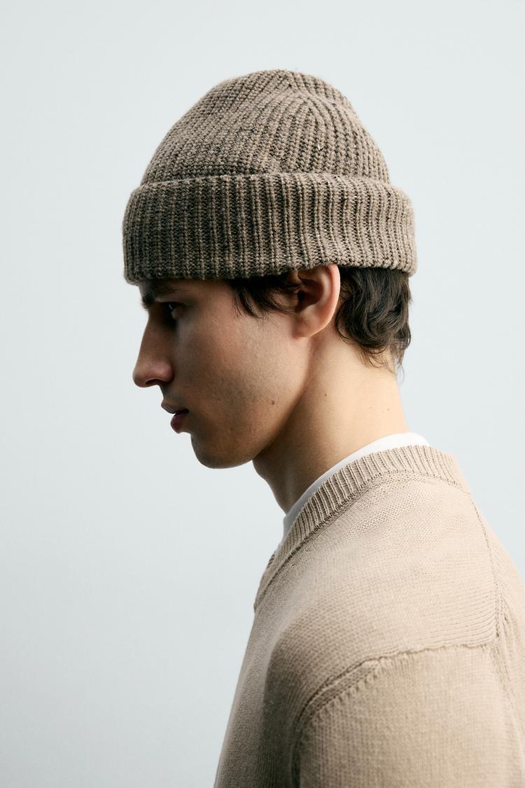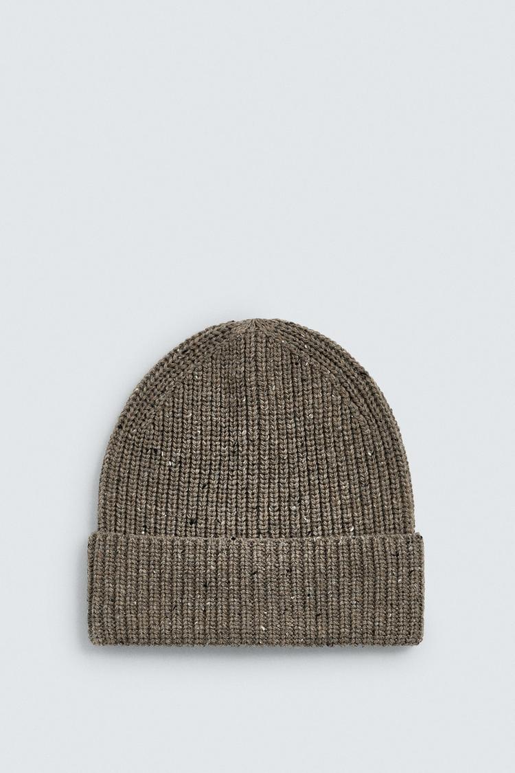 ZARA ШАПКА ИЗ РЕЛЬЕФНОЙ ПРЯЖИ, СЕРОВАТО-КОРИЧНЕВЫЙ