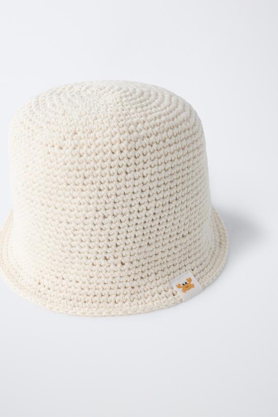 ZARA ШАПКА КРОШЕ С НАШИВКОЙ, ЭКРЮ
