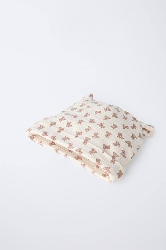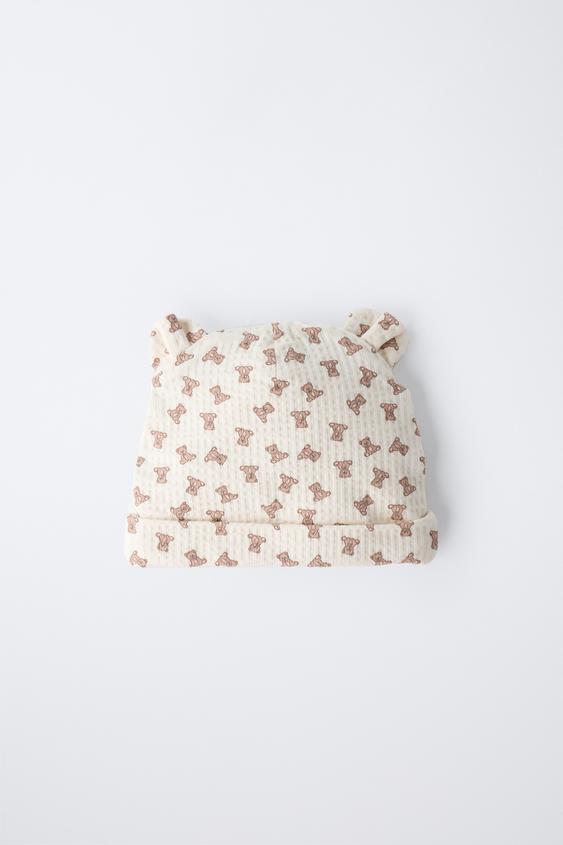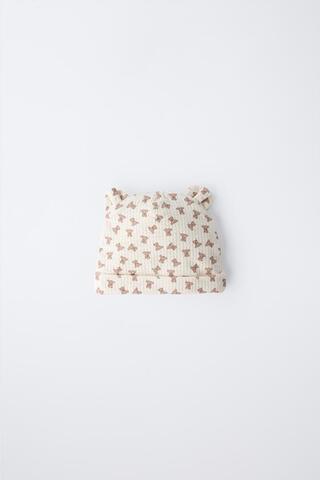 ZARA ШАПКА С УШКАМИ И МЕДВЕЖАТАМИ, ЭКРЮ