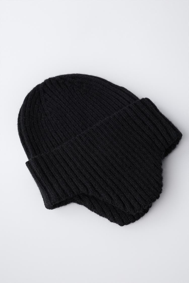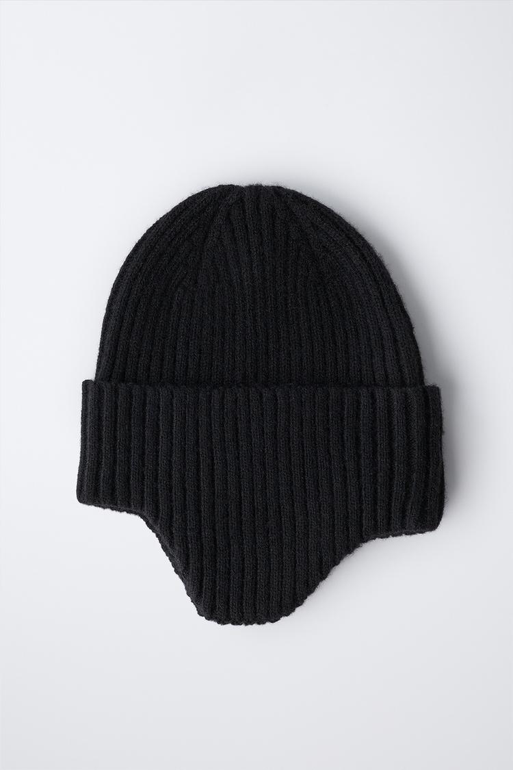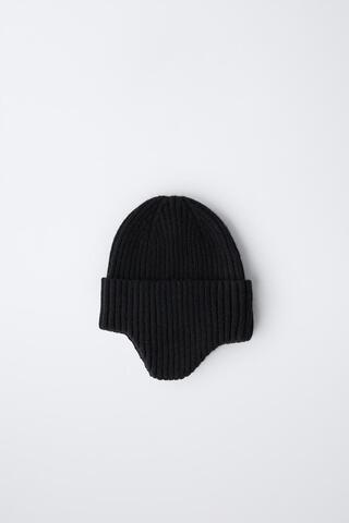 ZARA ШАПКА В РУБЧИК С НАУШНИКАМИ, ЧЕРНЫЙ