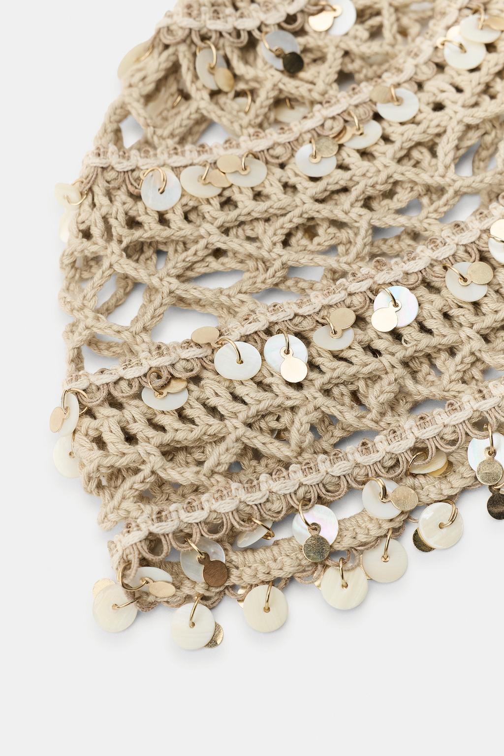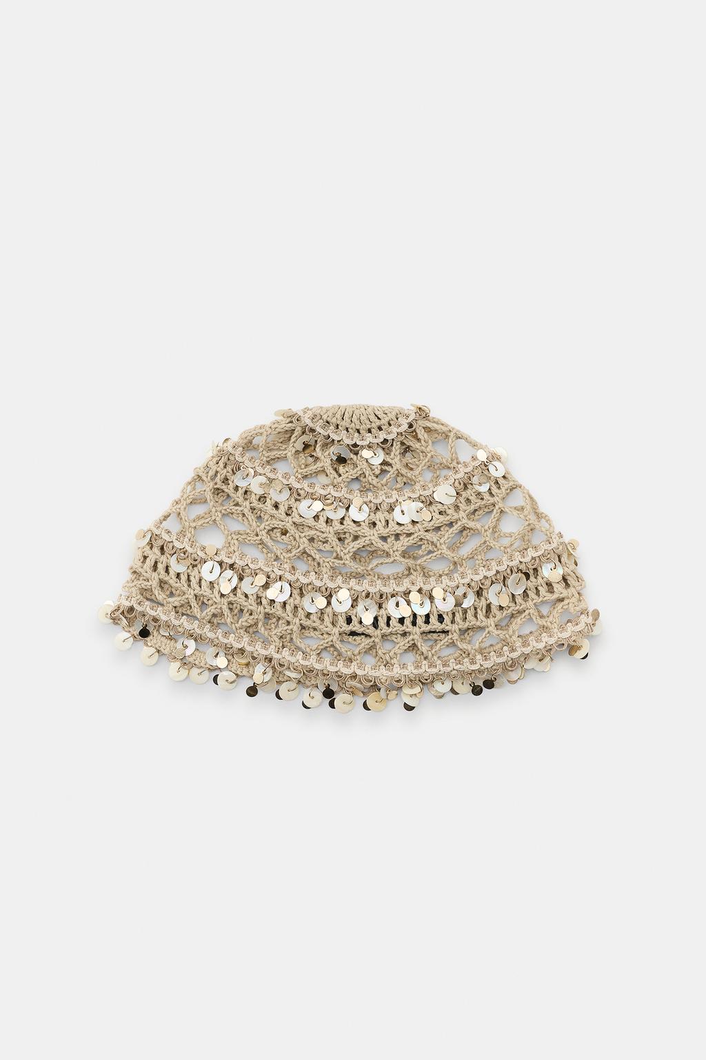 ZARA ШАПОЧКА ИЗ КРУЖЕВА КРОШЕ С РАКУШКАМИ, ЭКРЮ