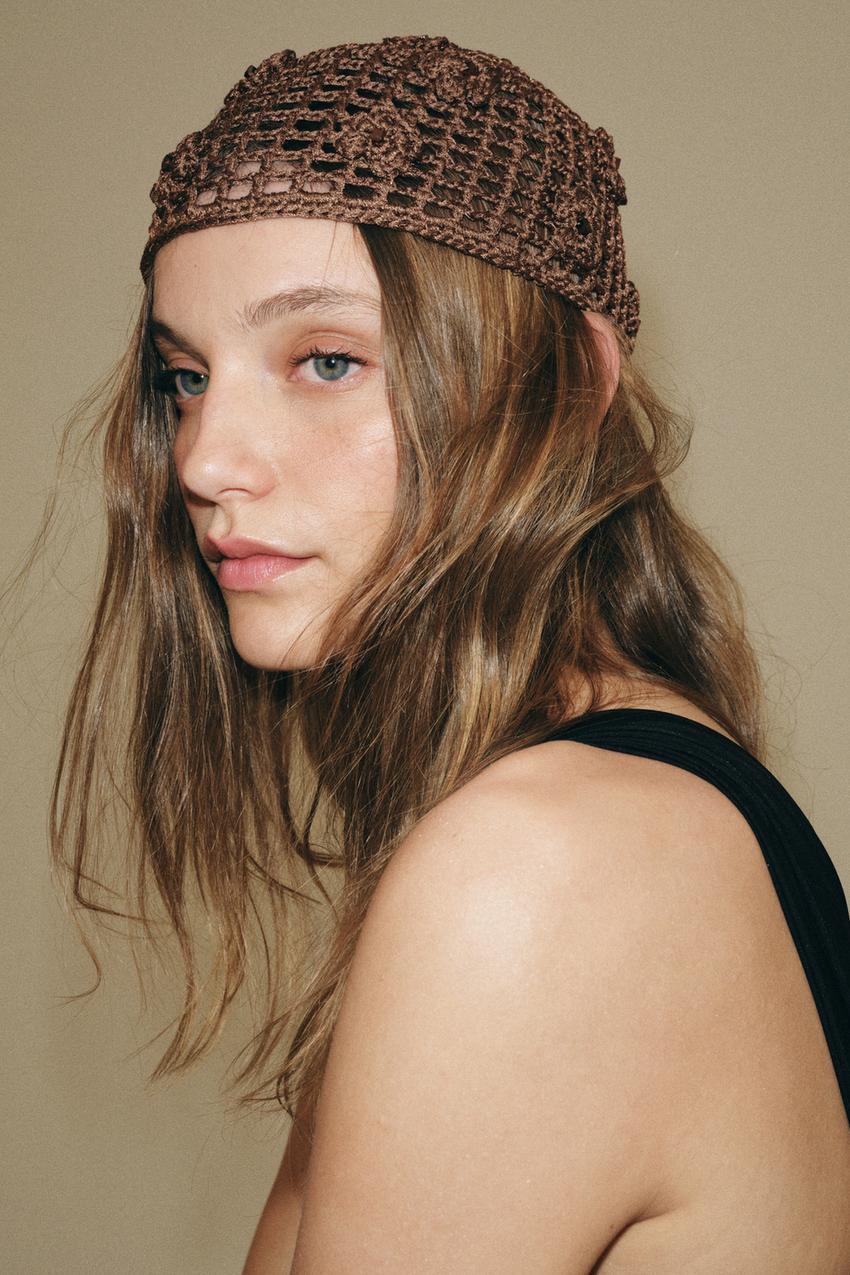 ZARA ШАПОЧКА КРОШЕ С ЦВЕТАМИ И БУСИНАМИ, ТЕМНЫЙ РЫЖЕВАТО-КОРИЧНЕВЫЙ