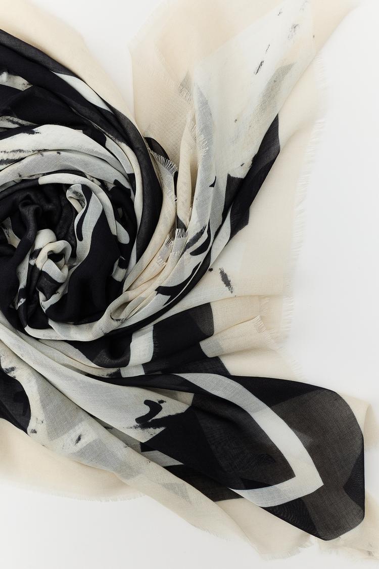 Шарф с принтом из модала и 8% шелка. Отделка контрастной линией.