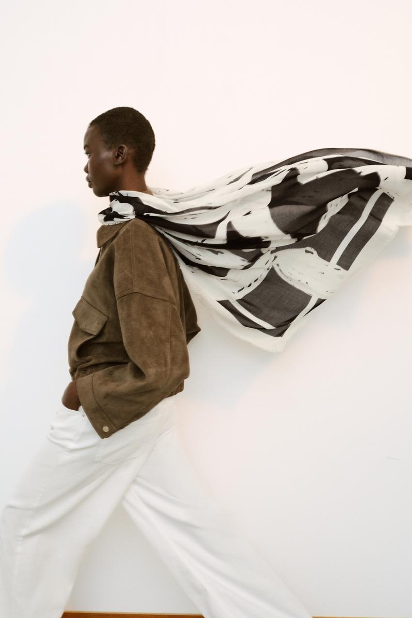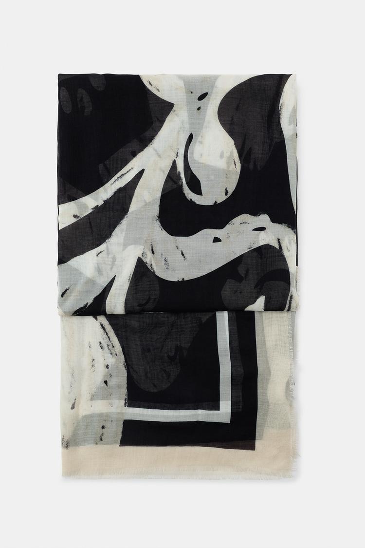 ZARA ШАРФ ИЗ МОДАЛА С ЦВЕТОЧНЫМ ПРИНТОМ, ЧЕРНЫЙ
