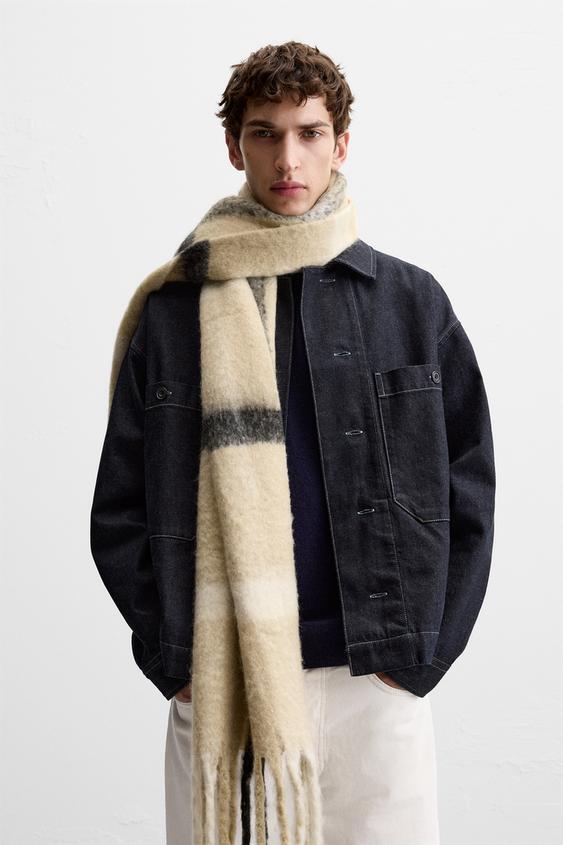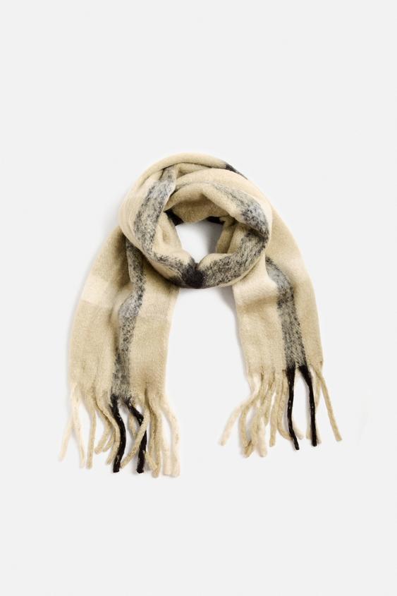 ZARA ШАРФ ИЗ РЕЛЬЕФНОЙ ТКАНИ С БАХРОМОЙ, БЕЖЕВЫЙ