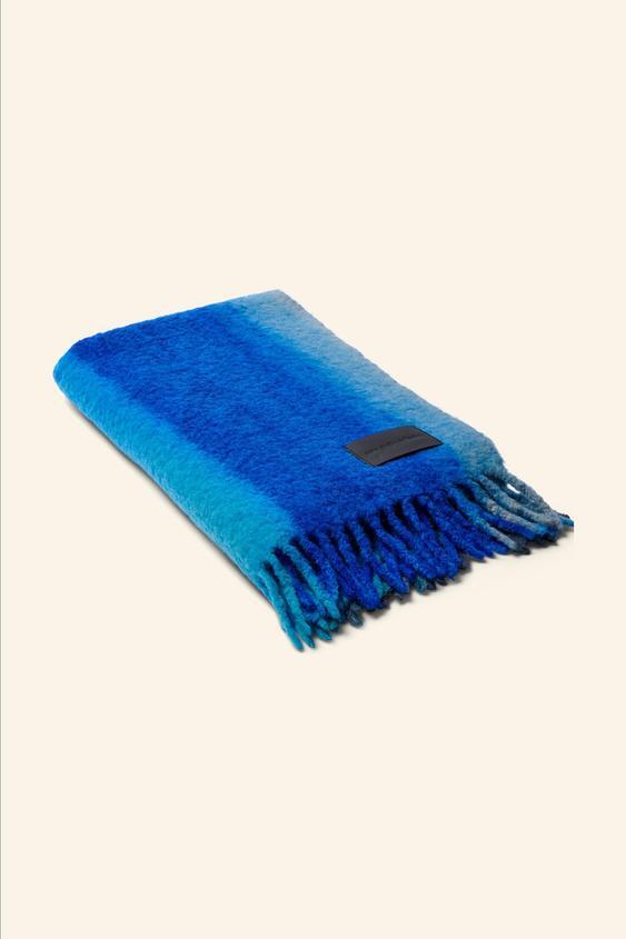 ZARA ШАРФ ИЗ СМЕСОВОЙ ШЕРСТИ - LIMITED EDITION, СИНИЙ