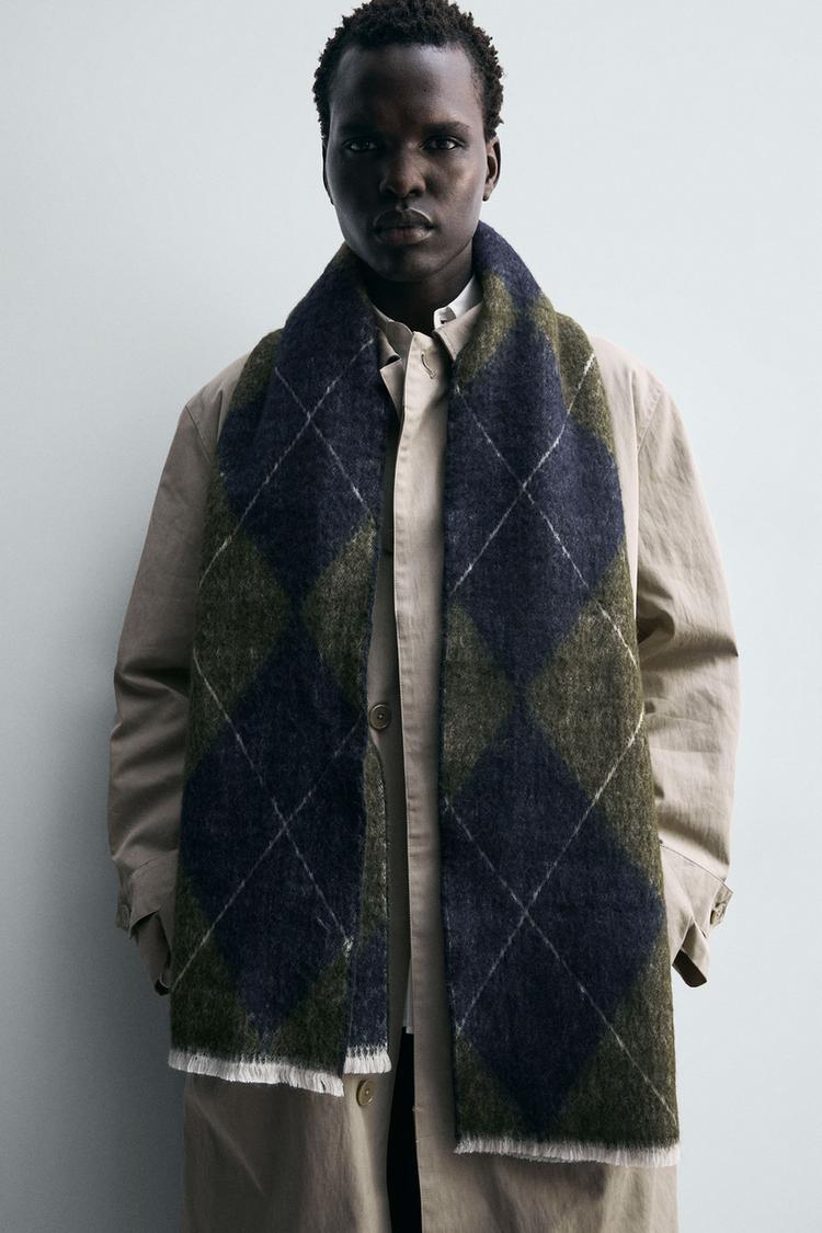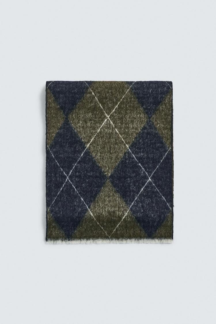ZARA ШАРФ ИЗ ЖАККАРДА С РОМБАМИ, ЗЕЛЕНОВАТО-СИНИЙ