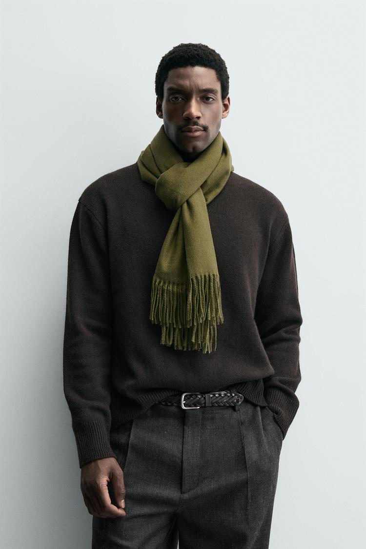 ZARA ШАРФ С БАХРОМОЙ, ХАКИ