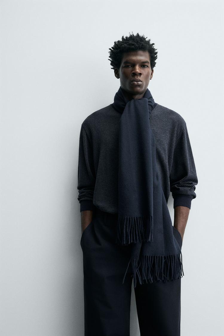 ZARA ШАРФ С БАХРОМОЙ, МОРСКОЙ СИНИЙ
