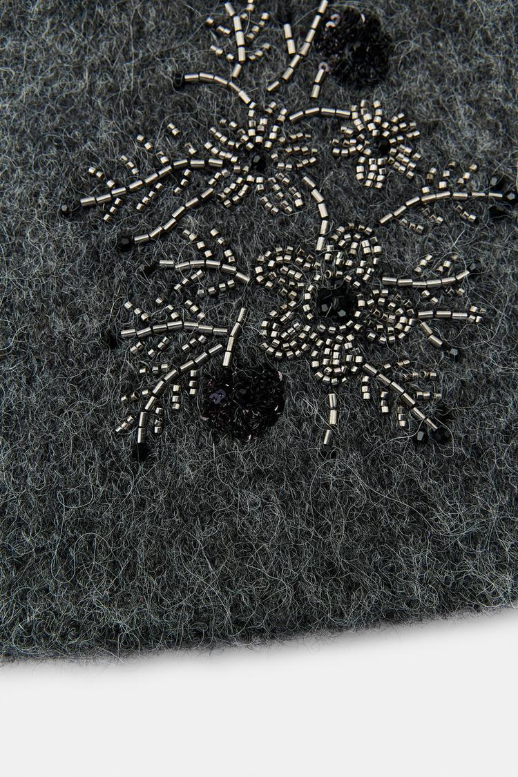 ZARA ШАРФ С ВЫШИВКОЙ И БУСИНАМИ, СЕРЫЙ