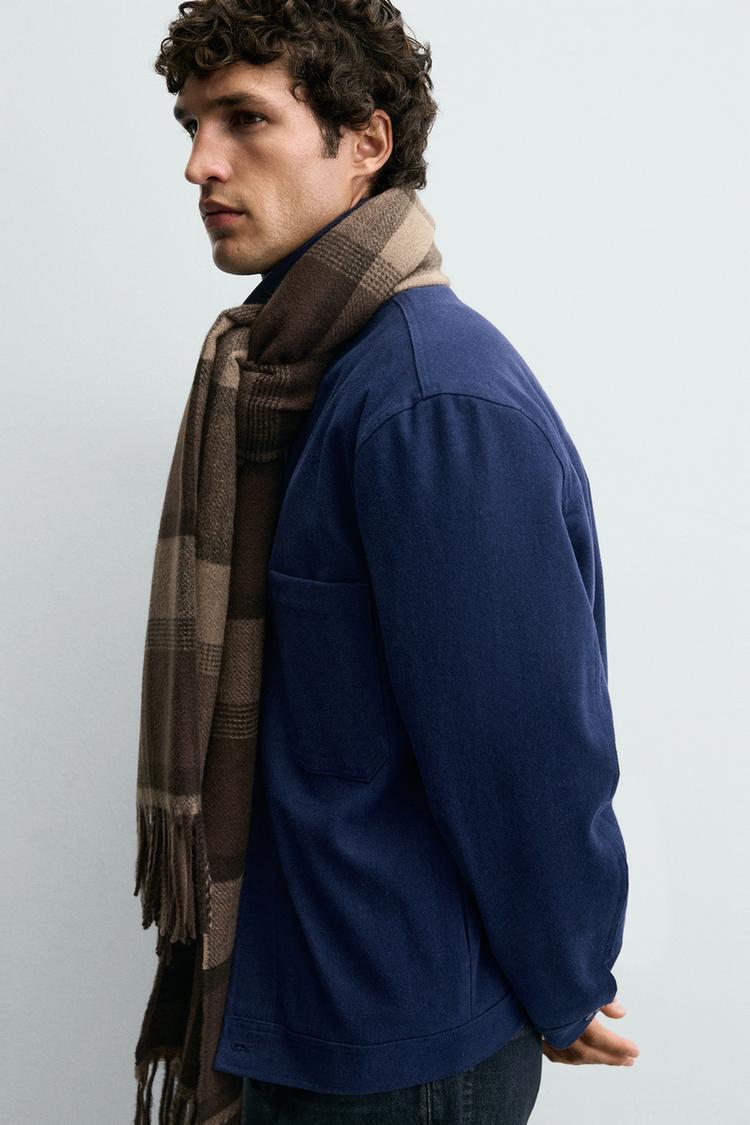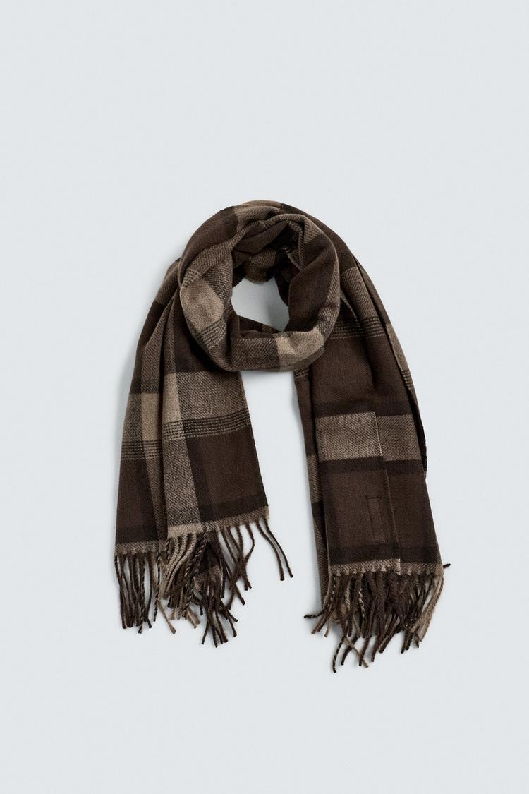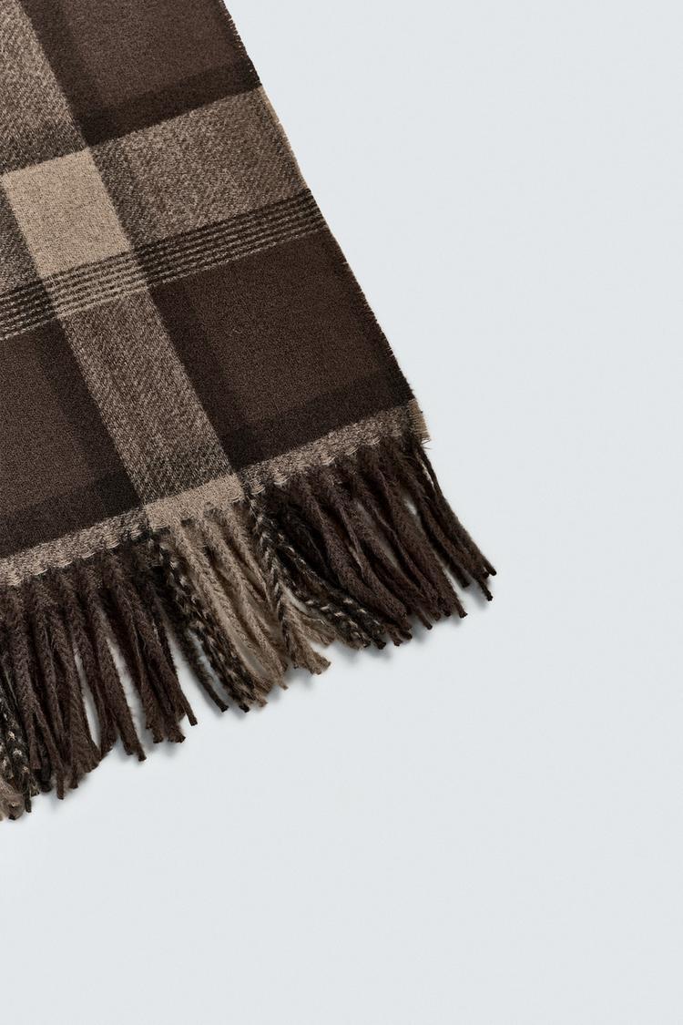 ZARA ШАРФ В КЛЕТКУ С БАХРОМОЙ, КОРИЧНЕВЫЙ
