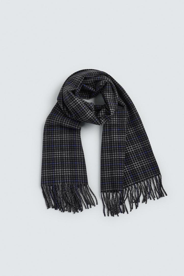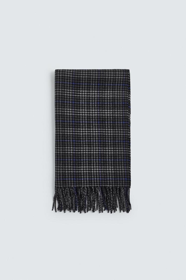 ZARA ШАРФ В КЛЕТКУ С БАХРОМОЙ, ТЕМНО-СЕРЫЙ