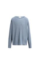 Свитер свободного кроя из смесового шелка и льна. Широкий круглый вырез, длинные рукава. Детали в рубчик. Эффект потертости.