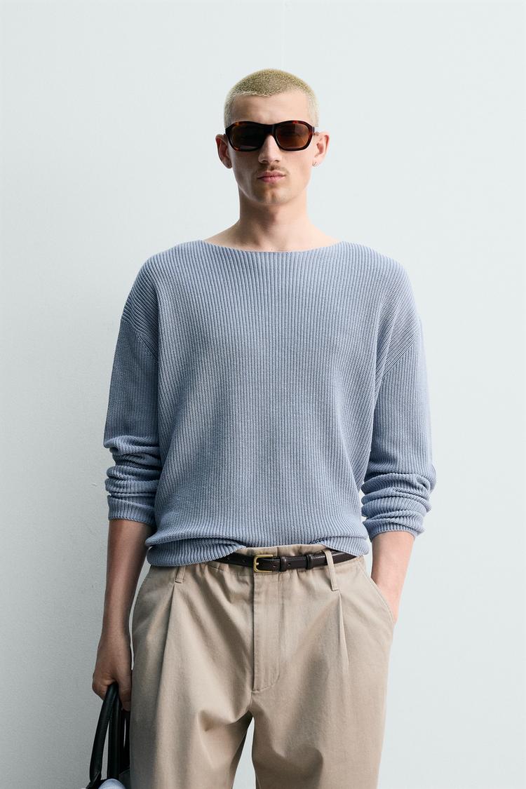 ZARA ШЕЛКОВО-ЛЬНЯНОЙ СВИТЕР, НЕБЕСНО-ГОЛУБОЙ