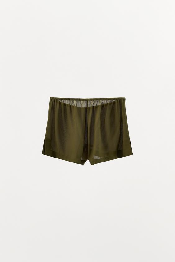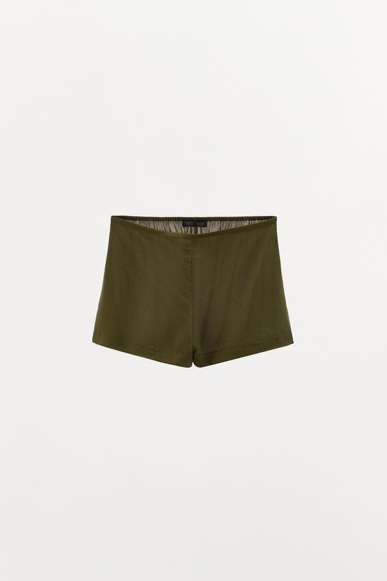 ZARА ШЕЛКОВЫЕ ШОРТЫ 100%, ЗЕЛЕНЫЙ