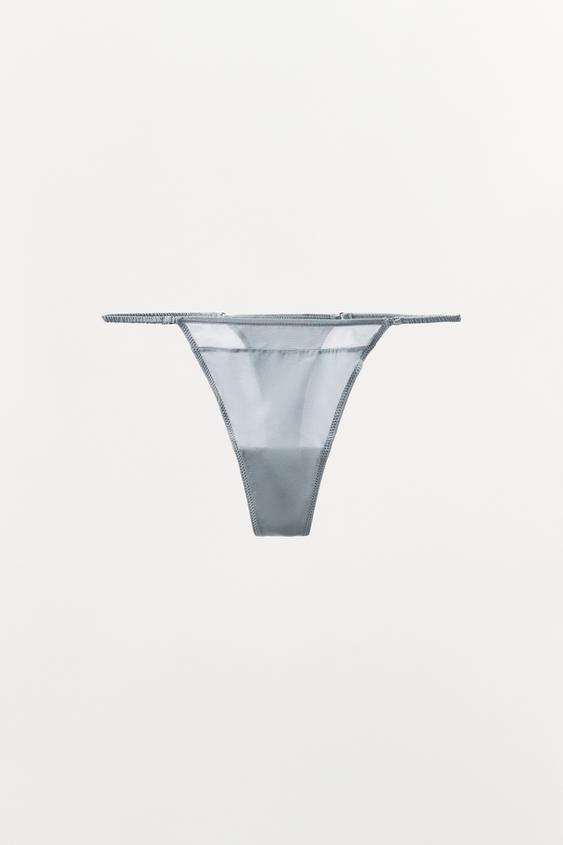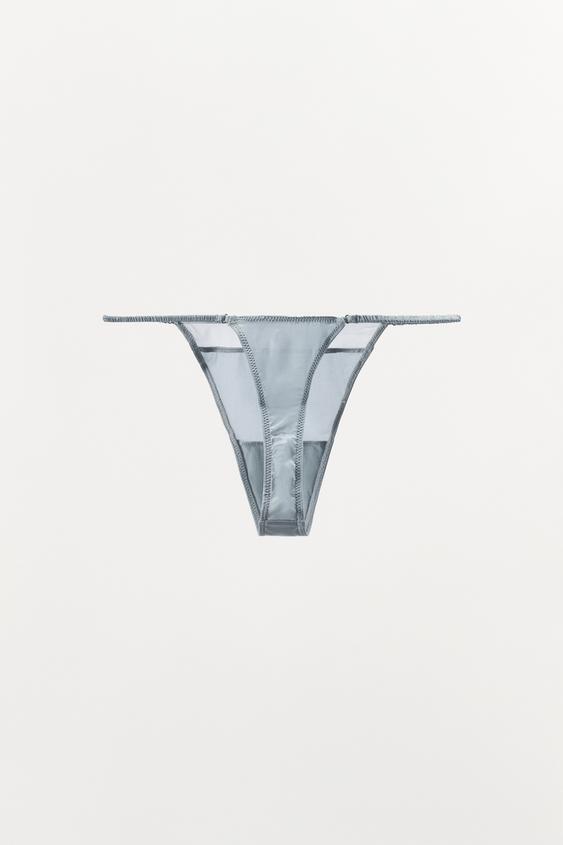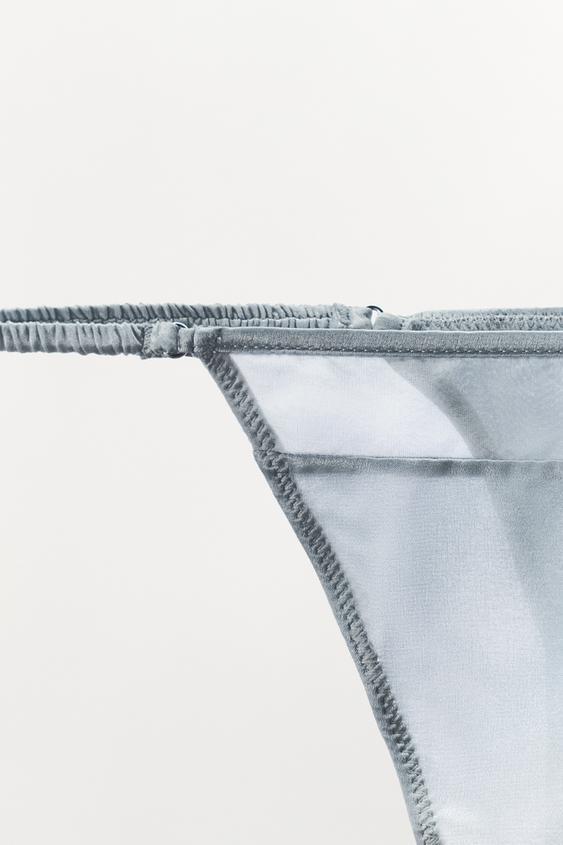 ZARA ШЕЛКОВЫЕ ТРУСЫ-ТАНГА, ГОЛУБОЙ