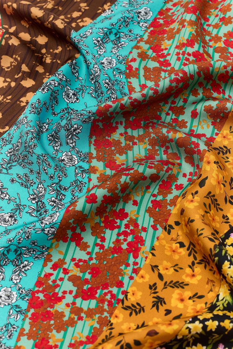 ZARA ШЕЛКОВЫЙ ПЛАТОК С ЦВЕТОЧНЫМ ПРИНТОМ, РАЗНОЦВЕТНЫЙ